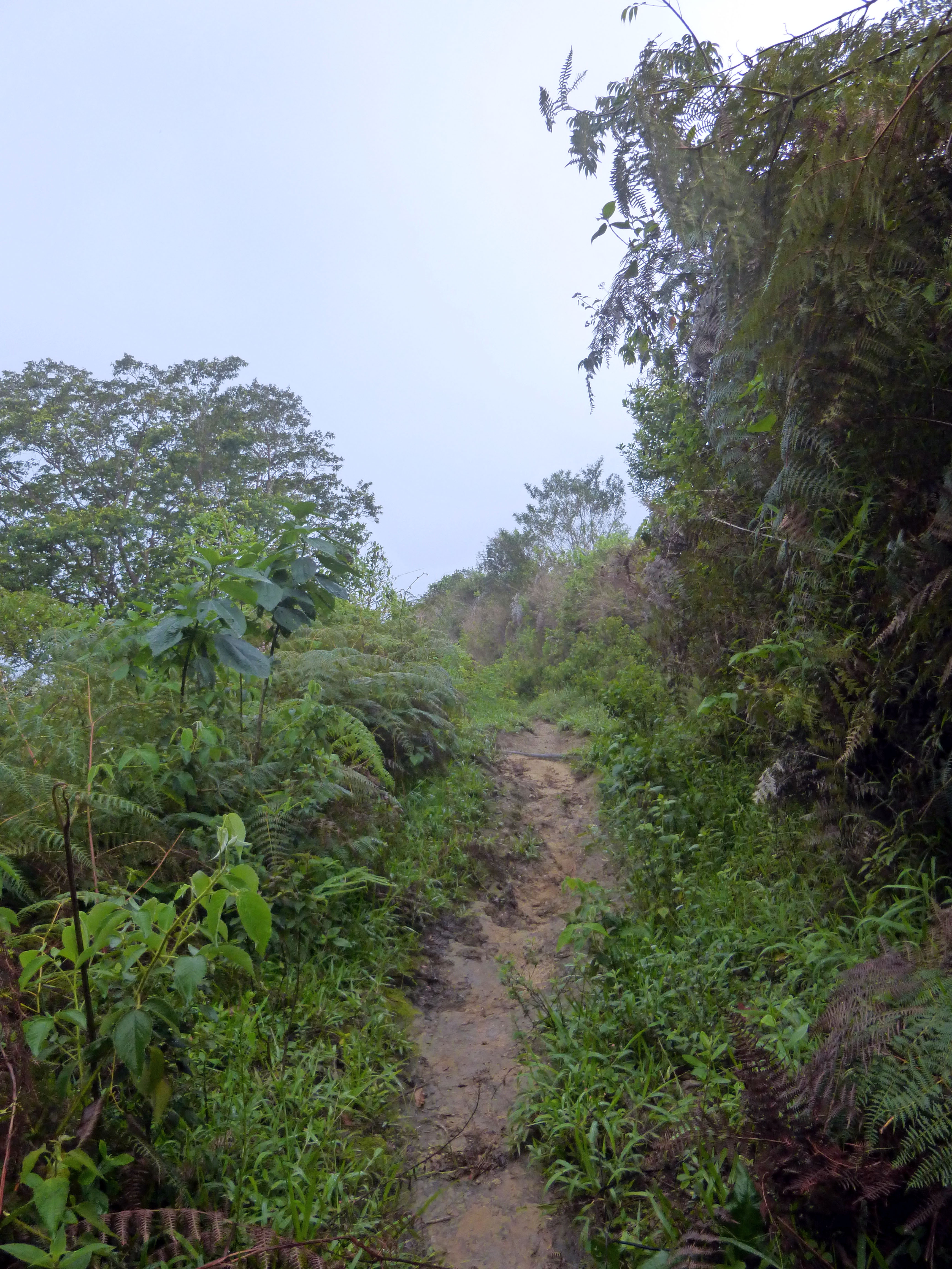 Antes de llegar a la cima decidimos seguir recto porque unas nubes asomaron desde la cima y nos van a impedir la visión así que no merece la pena pero seguimos con la excursión.
