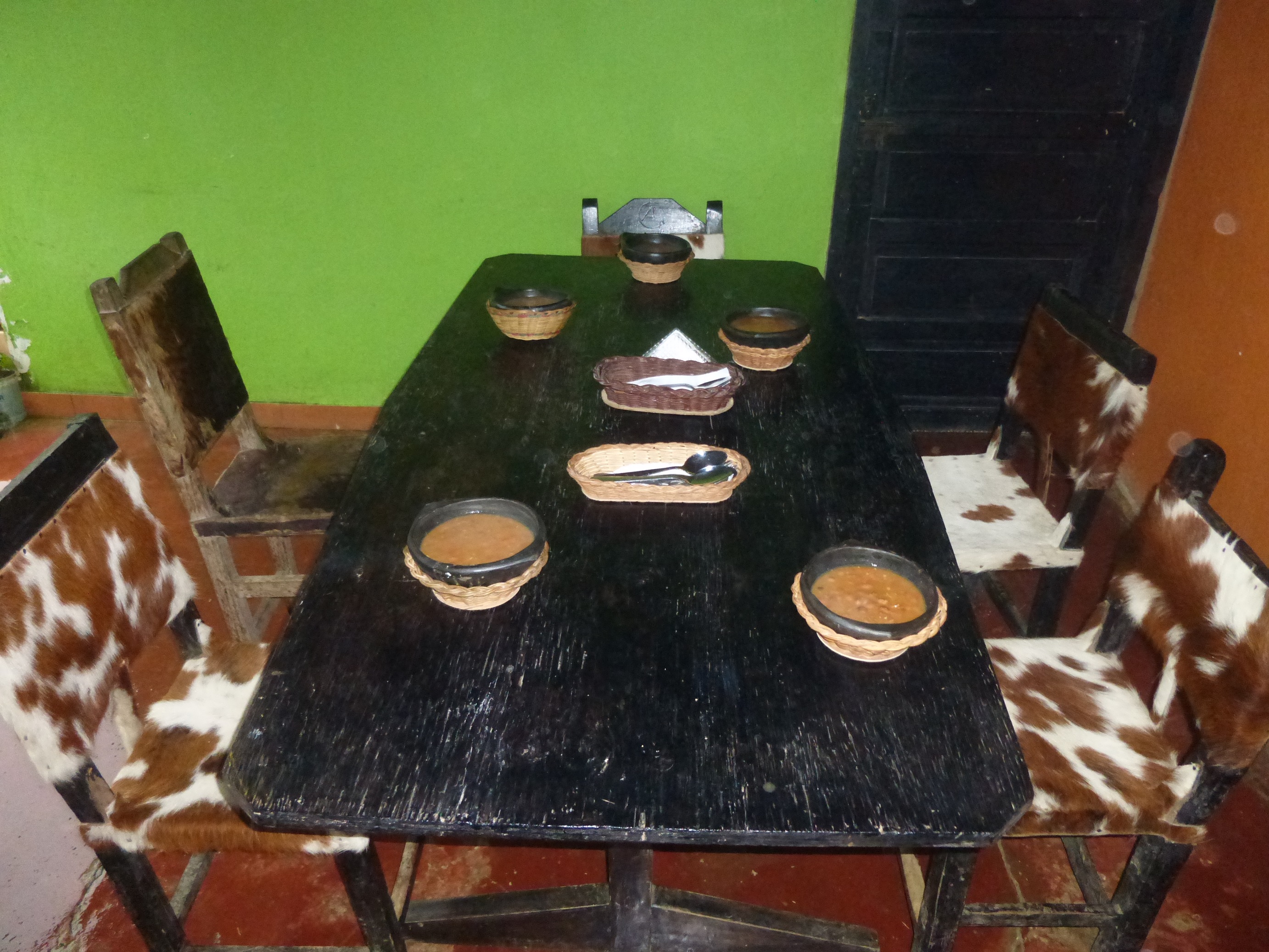 Ha empezado a llover fuerte durante toda la caminata y ahora que llegamos a Santa Elena la lluvia se ha intensificado tanto que no podemos salir de la finca, aunque también se agradece descansar un poco y secarse mientras nos traen aguapanela con limón, una bebida excelente y también una deliciosa cena colombiana.