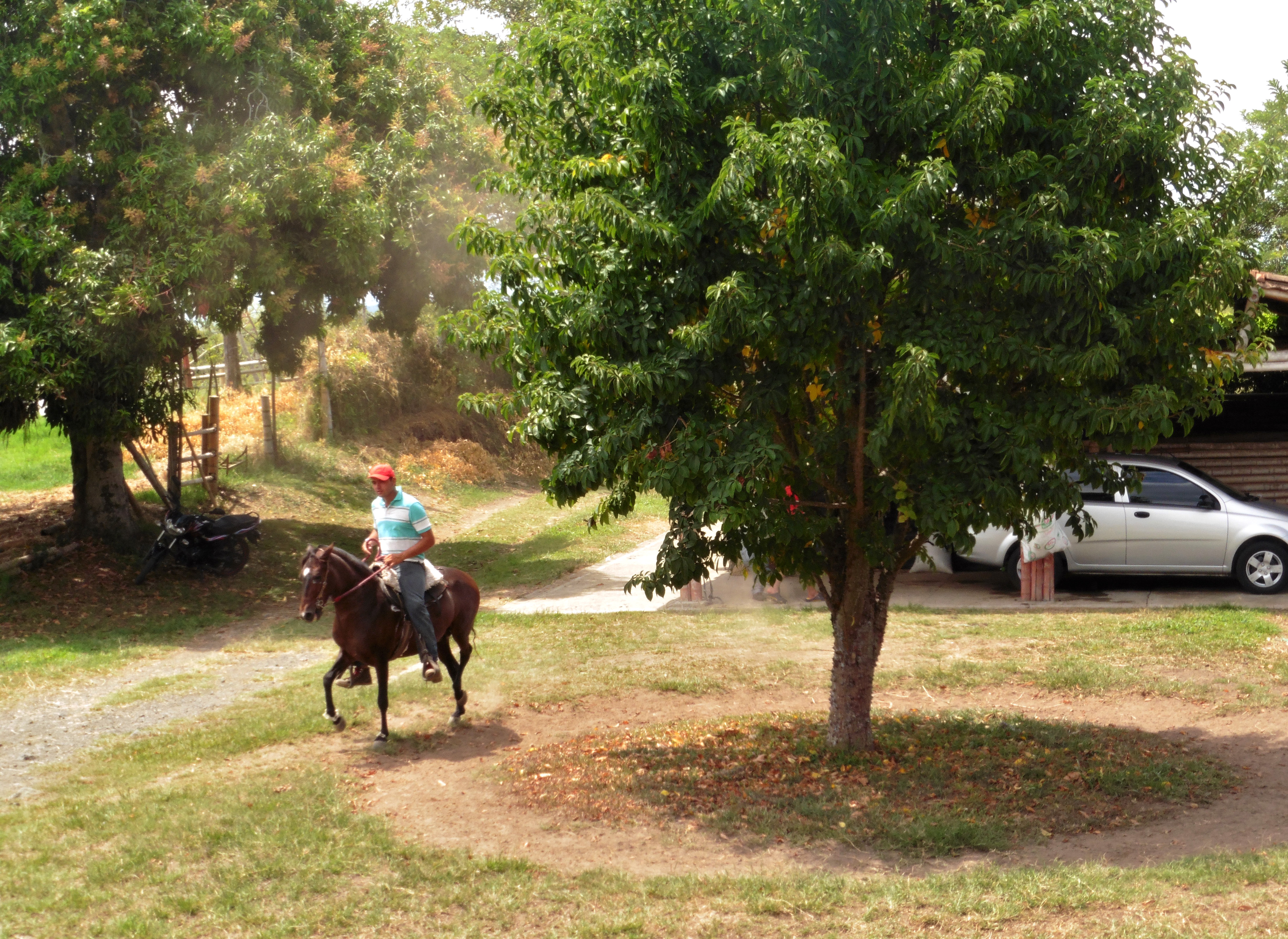 An other unique piece of Colombian tradition can be found in the backyard at the stables. It houses a couple of Caballo de paso Colombiano (traditional Colombian horses). These are competition horses and well taking care of. They have an interesting history. Ask the owner when he is around. He will tell passionate about them. A couple of times a week their care taker takes the horses for a ride in the garden, to train them and keep them fit. This is not a usual ride. These horses are known for their special way of walking. Enjoy this Colombian tradition, while you are enjoying a nice coffee, beer of whine on the terras.