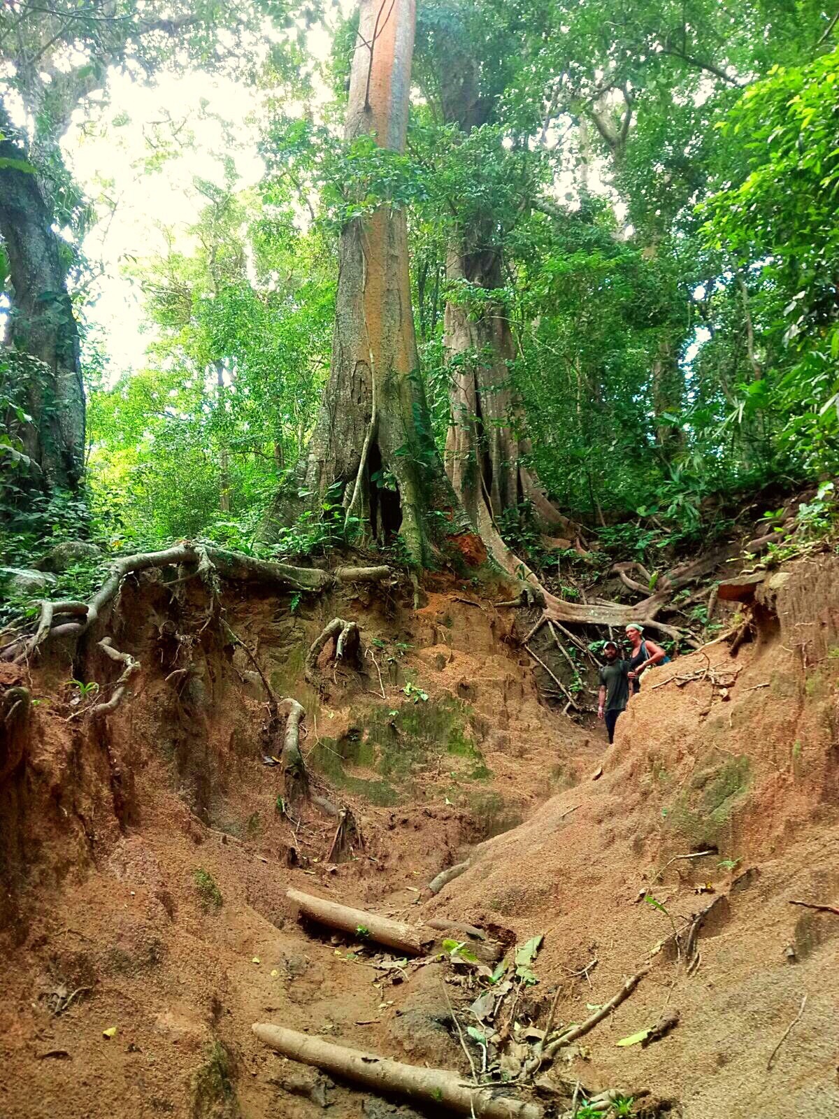 The next morning we watched the sunrise with the moon still visible. We ate breakfast at the restaurant at Cabo San Juan (12.000 for the complete breakfast with eggs, 6.000 COP for the simple breakfast without eggs). When I asked a man that worked there about another trail out of the park, he said yes there was one to Calabazo but it took about five hours to walk. Concerned about our lack of water and not wanting to get lost, Dani and I decided to just head that way for an hour and then return the way we had originally came, but on foot this time. But soon after getting on the trail, we met a guy from Bogota that had taken this trail into the park so we decided to join him for the journey.
